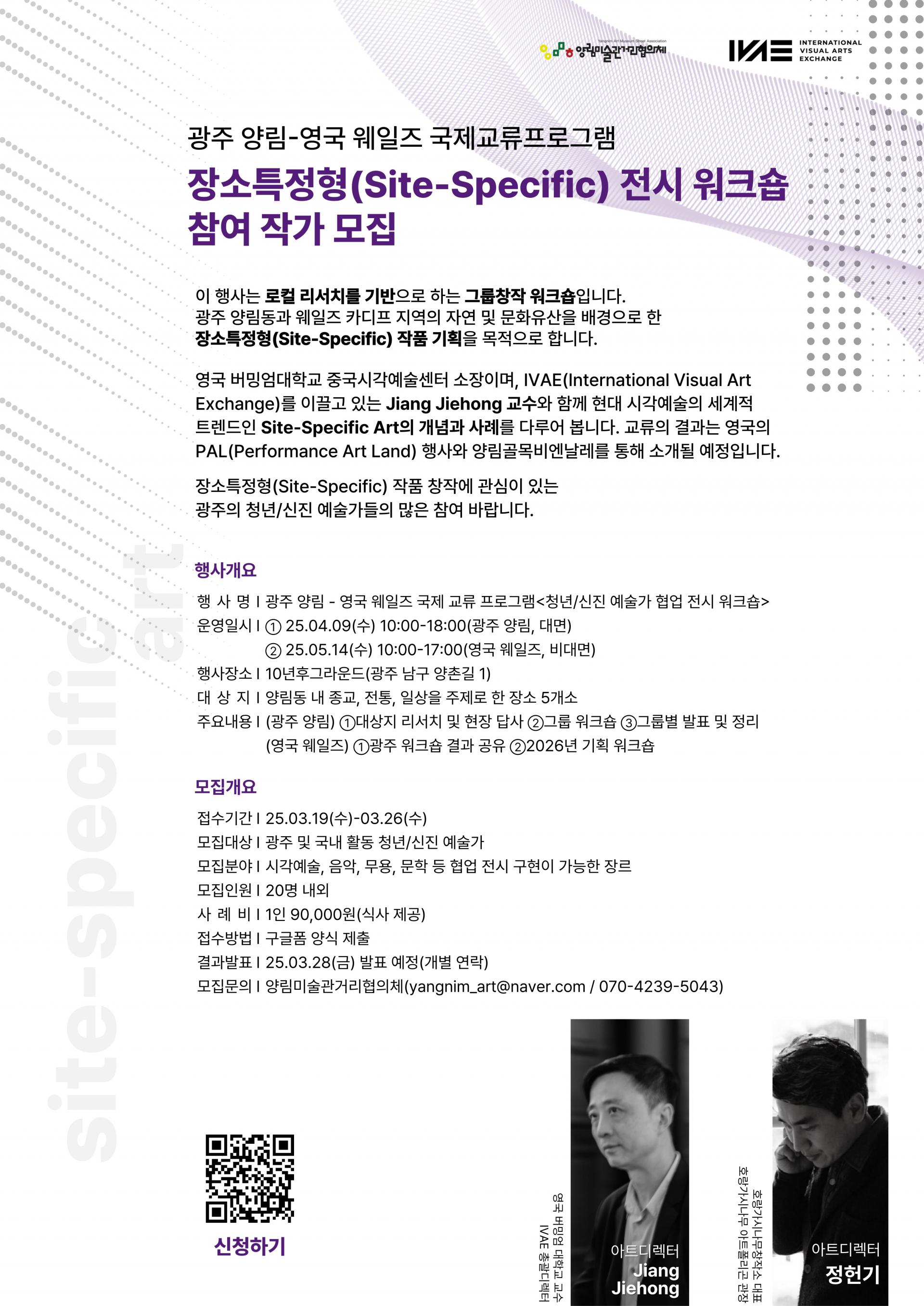 📢광주 양림-영국 웨일즈 장소특정형 전시 워크숍에 참여할 예술가를 모집합니다.